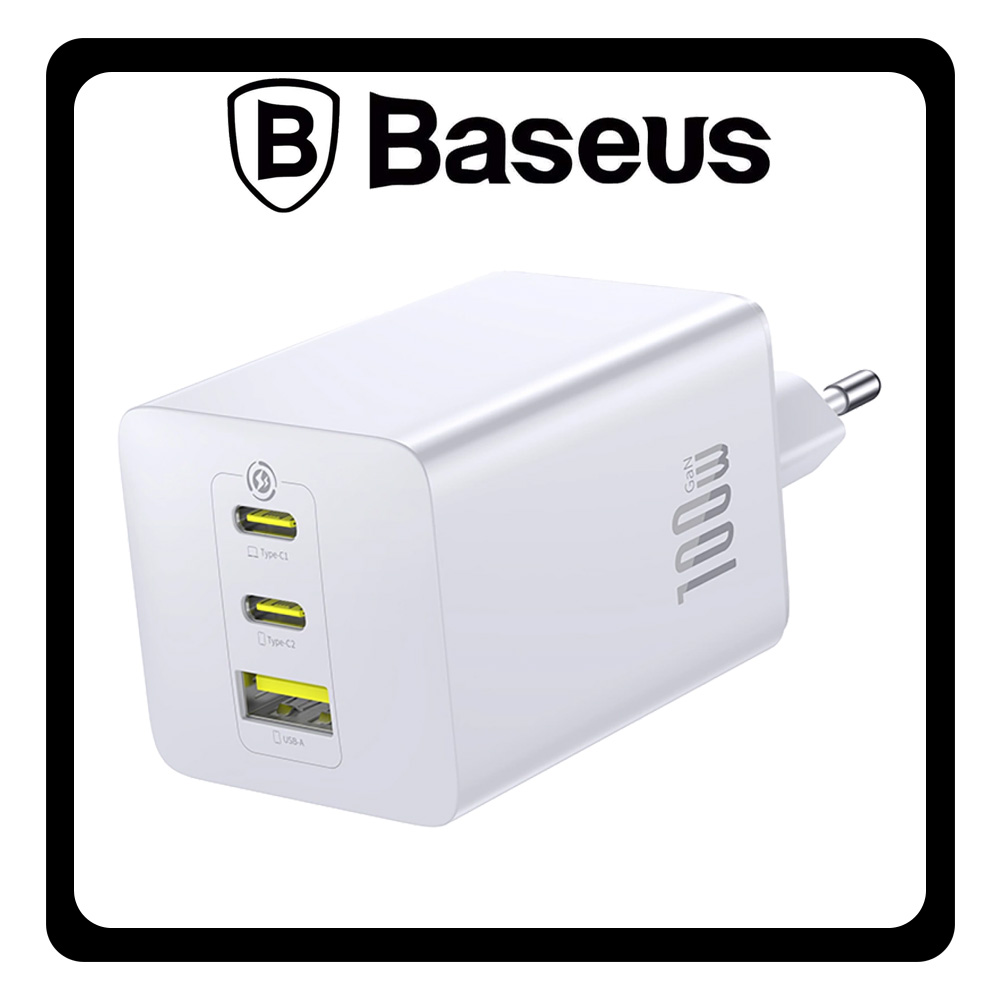 Baseus EnerFill FE11 Fast Charger 100W, 5A, Φορτιστής Ταξιδιού Γρήγορης Φόρτισης 100 Watt 5A, 1 x USB-A / 2 x USB-C White Άσπρο